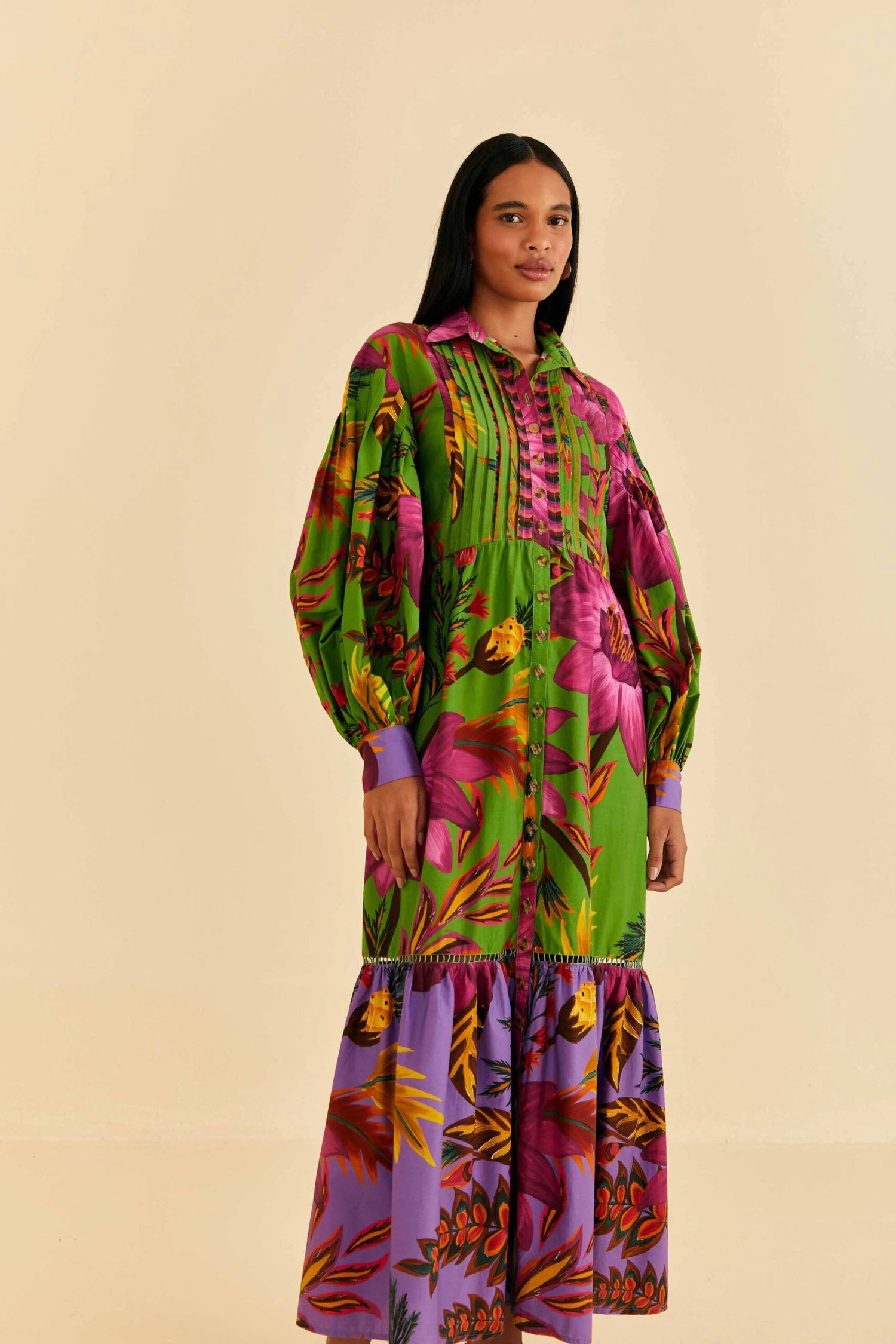 Fall into an even more stylish season in the best far-from-ordinary way with the Maxi Flowers Organic Cotton Maxi Dress. This flowy staple features long puff sleeves and a floral print for a contemporary look. The collar neckline and front buttons bring it a sophisticated vibe. Pair it with your most iconic