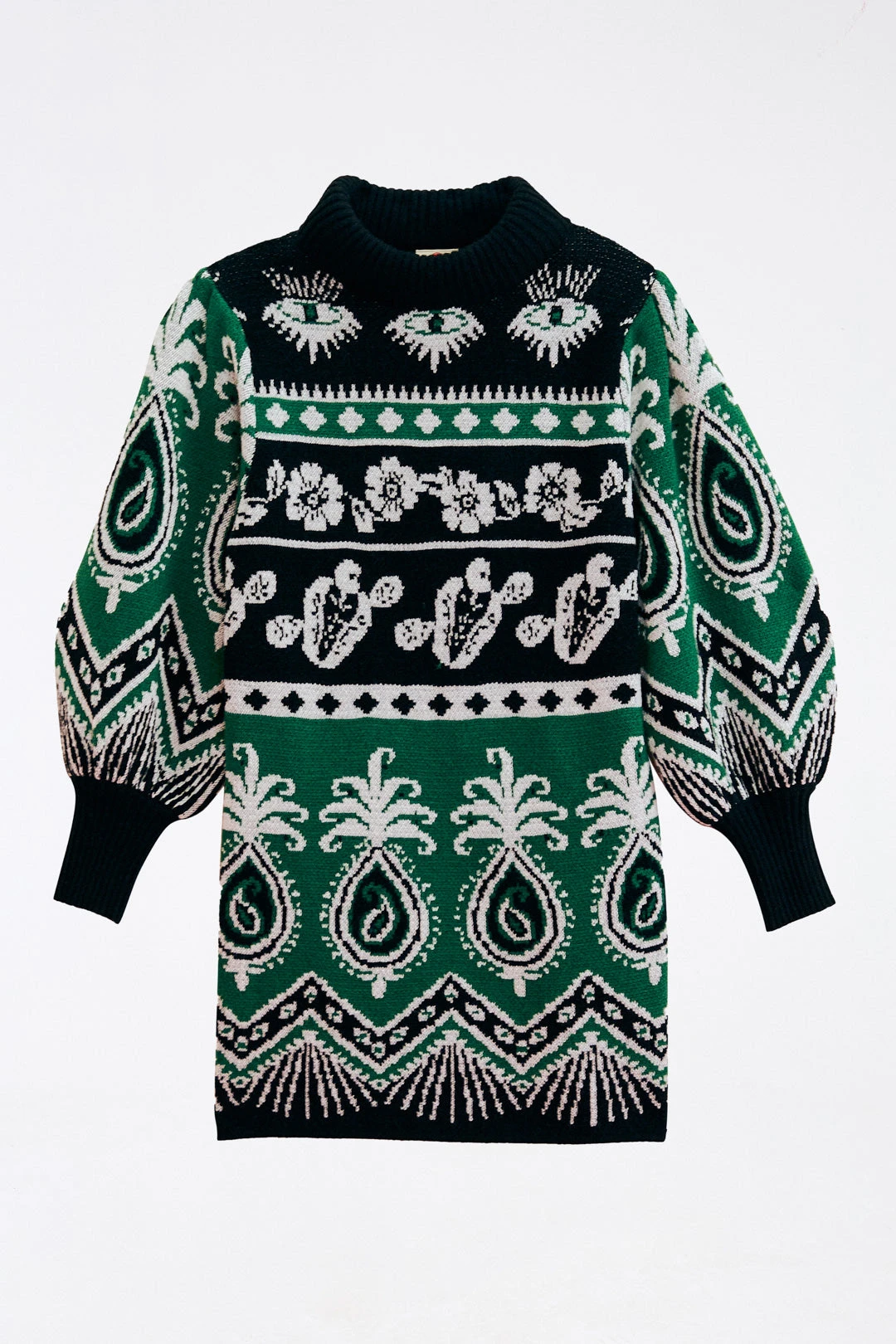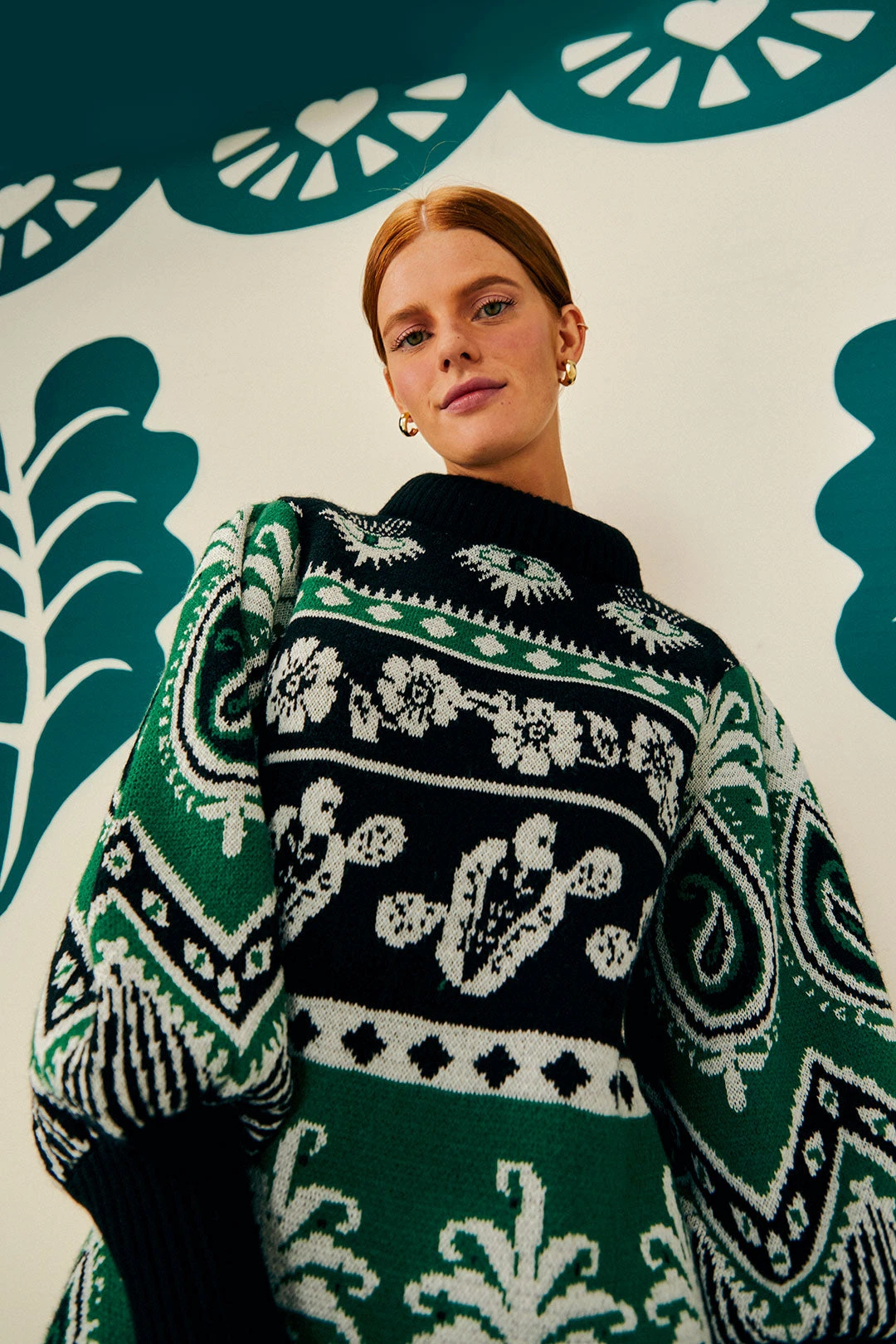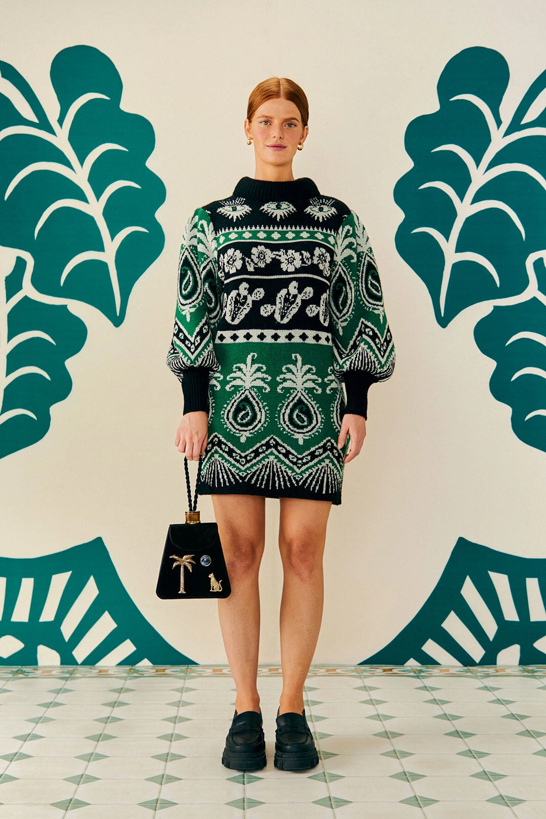 A timeless fave to elevate any occasion. The Mystic Scarf Sweater Dress brings a classic silhouette that embraces you and follows your bold moves at the same time. It has a snug neckline, long sleeves to deal with the breeze, and the print is an invite to get the best of all plans coming your way. So invite your bold FARM Rio Shoes to have fun all around!