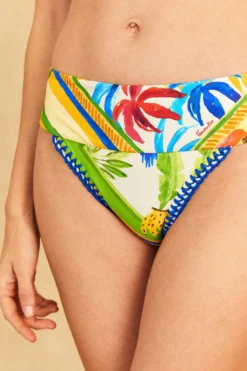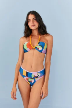 Farm Rio Blue Painted Birds Plaid Halter Neck One-Piece Swimsuit